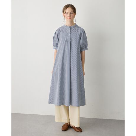 [型番:293269]華奢見え叶うスキッパーワンピ毎年ご好評のスキッパーワンピースが、今季は袖デザインをアップデート。ふんわりとしたランタンスリーブが、腕をすっきりと見せてくれます。程よく抜け感のある首元で軽やかな印象に。サンダルでラフに着るのはもちろん、パンツを重ねたスタイルや羽織りを合わせた着こなしもおすすめです。