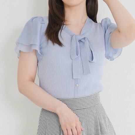 2026春夏新作 ボウタイラメダブルシアー袖ニット