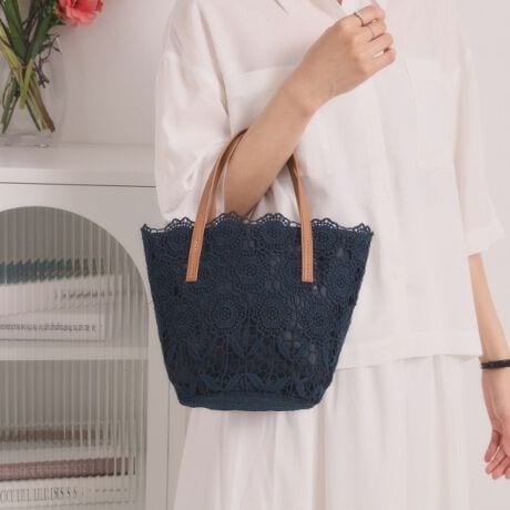 繊細レースが華やかに映える、上品トートバッグ