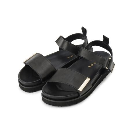 ゴールド金具がポイントの太めストラップで履きやすいサンダルは、夏の足元のポイントになってくれる一足です。