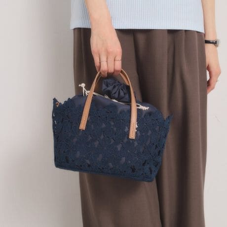 繊細なフラワーレースが目を引く、上品な印象のトートバッグ。