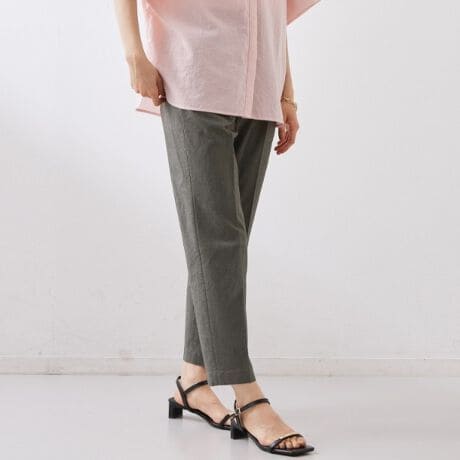 脚のラインをまっすぐきれいに整えながら、ウエストゴムで快適さも確保。