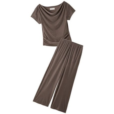 <b>女性らしいドレープ感のあるシアーベロアセットアップ</b>