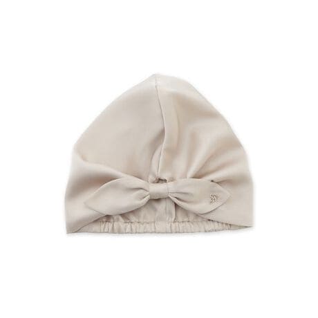 きゅっと品よく結んだリボンディテールが可愛い、柔らかなサテン素材のナイトキャップです。