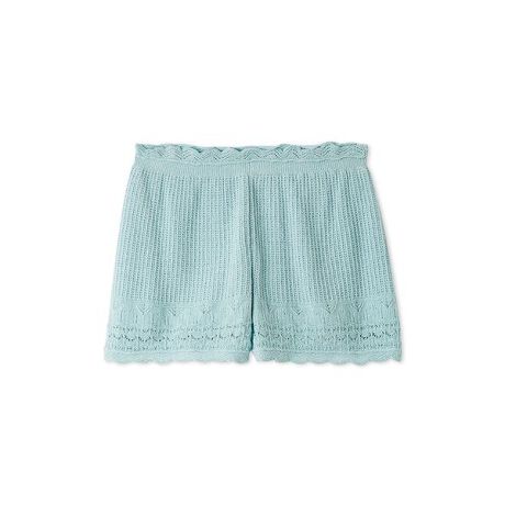 ウエストと裾で編み地を切り替えたショートパンツ。