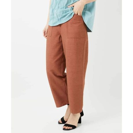 さらりとした清涼感のある素材が心地よくお楽しみいただけます。ラフな表面感ながらきちんと感があります。動きやすさは着やすさも抜群なので、旅先でも重宝します。合わせのトップスは同系色を合わせるのがおすすめ。まとまりのあるスタイリングが叶います。