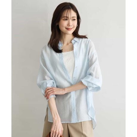 釦を留めてプルオーバーとしても、シャツ羽織りとしても活躍してくれるシャツブラウスは、日除けや冷房対策にも便利なアイテム。シアーで透け感はこなれ感があり、ゆとりのあるシルエットは様々なインナーと相性抜群です。