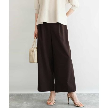 ストレートワイドのすっきりとしたシルエットのパンツ。プルオンタイプにストレッチの効いた素材がストレスフリーな履き心地です。身体のラインを拾わず、程よいゆとりがあるので、涼しげに着用できます。