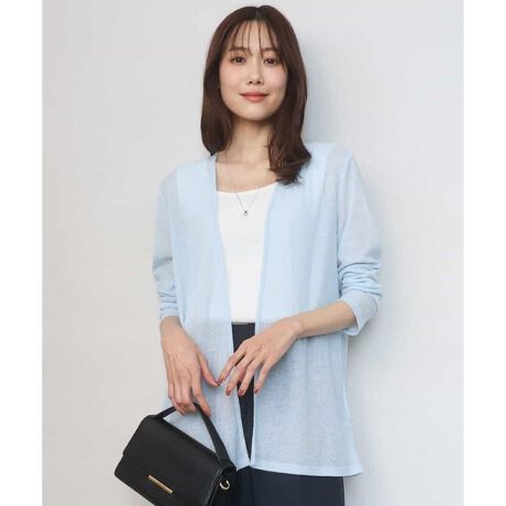 釦のない着流しタイプのカーディガン。縦長のIラインを作り出し、すっきりとした印象を与えます。衿元を削ぎ落としたミニマルなデザインです。気になる二の腕をカバーしつつシアーな質感が軽やかさを演出します。