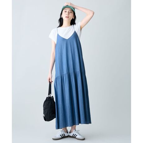 any FAM/anyFAM/any fam/エニファム/エニィファム/キャミワンピース/マキシ丈/フレアギャザー/ティアード/ライトブッチャー/レディース/レイヤード/カジュアル