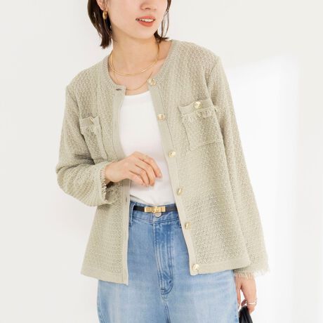 ・メッシュ編みで通気性抜群、夏まで快適に羽織れるニットジャケット