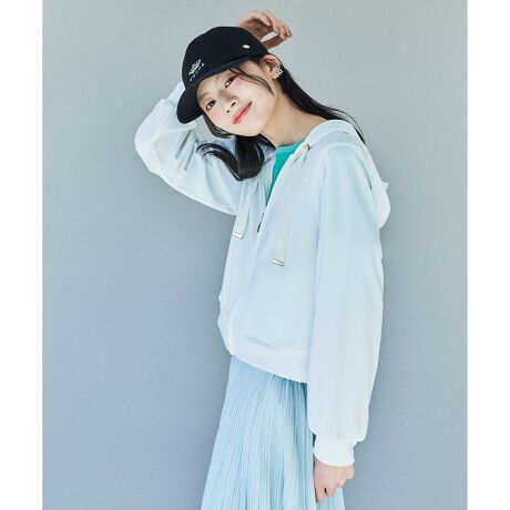 軽やかさとエレガンスを両立した、ジップアップタイプのラッシュガードパーカー。