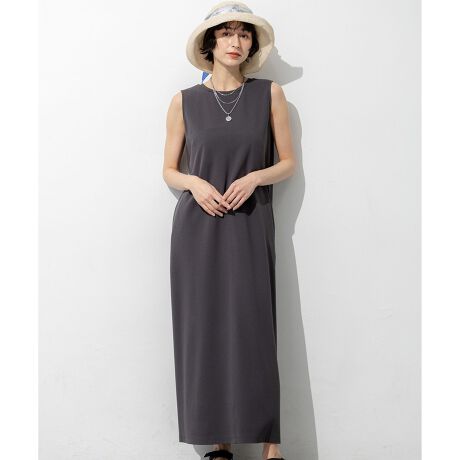 ボディラインを拾いすぎない程よい肉感の素材を使用し、一枚でさらりと決まるノースリーブワンピースです。シャツを羽織ったり、スカーフを腰に巻いたりと、幅広いアレンジが楽しめるよう極力シンプルなデザインに仕上げました。前は上品なクルーネック、後ろはすっきりとしたVネックになっており、前後どちらでも着用可能なパターンを採用しています。その日の気分や合わせるアクセサリーによって表情を変えられるのが魅力です。リラックスしたい休日から、小物使いで華やかに見せたいお出かけシーンまで幅広く活躍します。カラーは、ニュアンスのある色味で洗練されたグレー(#004)と、シックで着回し力抜群のブラック(#005)の2色展開です。