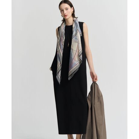 ボディラインを拾いすぎない程よい肉感の素材を使用し、一枚でさらりと決まるノースリーブワンピースです。シャツを羽織ったり、スカーフを腰に巻いたりと、幅広いアレンジが楽しめるよう極力シンプルなデザインに仕上げました。前は上品なクルーネック、後ろはすっきりとしたVネックになっており、前後どちらでも着用可能なパターンを採用しています。その日の気分や合わせるアクセサリーによって表情を変えられるのが魅力です。リラックスしたい休日から、小物使いで華やかに見せたいお出かけシーンまで幅広く活躍します。カラーは、ニュアンスのある色味で洗練されたグレー(#004)と、シックで着回し力抜群のブラック(#005)の2色展開です。