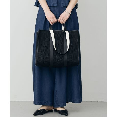 ■デザインシアー感のあるメッシュ素材が、夏らしい印象のトートバッグです。リラックス感のあるゆったりとしたサイズ感とシルエットで、内装には取り外し可能な巾着バッグが付いています。巾着には30周年限定の柄プリントを施しており、メッシュ越しにほんのりと透けて見えるデザインがアクセントになっています。本体の内側と巾着バッグそれぞれに1つずつポケットが付いているのも便利なポイント。また長さの異なる2種類のハンドルが付いており、手持ちでも肩掛けでもバランス良くお持ちいただけます。夏のスタイリングに大人の抜け感をプラスするアイテムです。