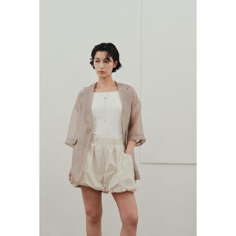 モデル身長167cm(Mサイズ着用)【ACTIVE WEAR Collection】ハリのあるナイロン素材にUVカットと撥水加工を施したバルーンショートパンツ。裏地にはメッシュ素材を使用し、夏でも快適な履き心地を叶えます。ウエストタック奥はホールあきになっており、お好みでベルトを通したスタイリングも楽しめます。デイリーからアウトドアなど様々なシーンで活躍するショートパンツです。ウエストがゴム仕様で、内側の紐でサイズ調節が可能。透け感IVOYややあり、ストレッチなし。【お手入れ方法】マシンウォッシュ可※この製品は表素材に撥水加工を施しており、雨などの水を弾く撥水効果があります。繰り返しの着用や洗濯により効果は弱くなっていきます。