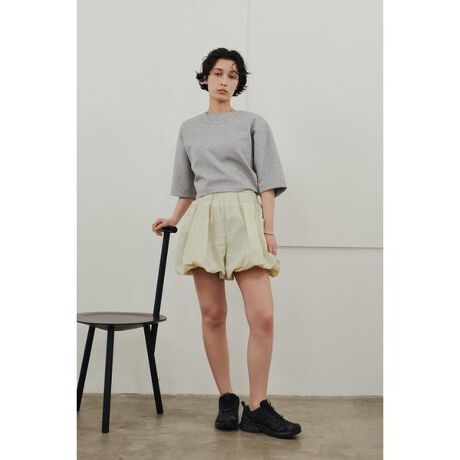 モデル身長167cm(Mサイズ着用)【ACTIVE WEAR Collection】ハリのあるナイロン素材にUVカットと撥水加工を施したバルーンショートパンツ。裏地にはメッシュ素材を使用し、夏でも快適な履き心地を叶えます。ウエストタック奥はホールあきになっており、お好みでベルトを通したスタイリングも楽しめます。デイリーからアウトドアなど様々なシーンで活躍するショートパンツです。ウエストがゴム仕様で、内側の紐でサイズ調節が可能。透け感IVOYややあり、ストレッチなし。【お手入れ方法】マシンウォッシュ可※この製品は表素材に撥水加工を施しており、雨などの水を弾く撥水効果があります。繰り返しの着用や洗濯により効果は弱くなっていきます。