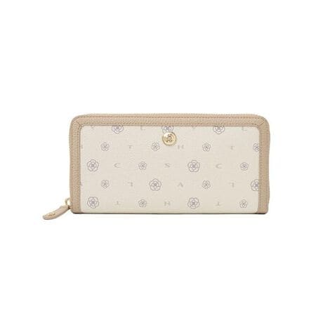 摩擦に強いPVC素材と手付属パーツを組み合わせた、実用性の高さが魅力のミカシリーズ。PVC素材には、カメリアモチーフとブランドロゴのアルファベットを散りばめたコンパクトな総柄プリントを施し、主張しすぎない中にもCLATHASらしい華やかさをプラス。汚れやキズが付きにくく、お手入れしやすい素材感は、毎日持ち歩く財布にぴったりです。通勤やお出かけ、旅行など幅広いシーンで活躍し、実用性重視の方にもおすすめの大人向けウォレットです。【メーカーサイズ寸法(実寸)】サイズ:H:10/W:19.5/D:2/重さ:200g/内装札入:3/ファスナー小銭入れ:1/カードスロット:22/フリーポケット:2