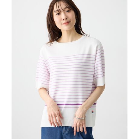 マルイウェブチャネル   /   プチ オンフルール   /   トップス   /   ニット・セーター   /   ハーフスリーブニットボーダープルオーバー【UVカット・接触冷感】