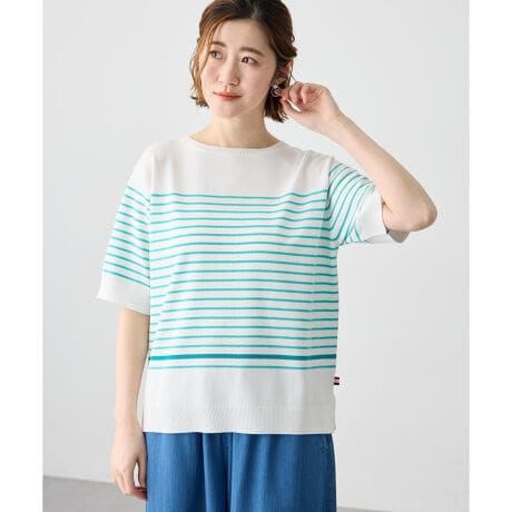 ハーフスリーブニットボーダープルオーバー【UVカット・接触冷感】