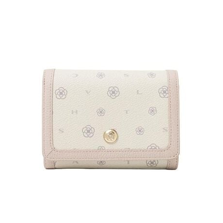 摩擦に強いPVC素材と手付属パーツを組み合わせた、実用性の高さが魅力のミカシリーズ。PVC素材には、カメリアモチーフとブランドロゴのアルファベットを散りばめたコンパクトな総柄プリントを施し、主張しすぎない中にもCLATHASらしい華やかさをプラス。汚れやキズが付きにくく、お手入れしやすい素材感は、毎日持ち歩く財布にぴったりです。通勤やお出かけ、旅行など幅広いシーンで活躍し、実用性重視の方にもおすすめの大人向けウォレットです。【メーカーサイズ寸法(実寸)】サイズ:H:10/W:13/D:4.5/重さ:160g/札入れ:2/小銭入れ(仕切り有):1/カードスロット:17/フリーポケット:5