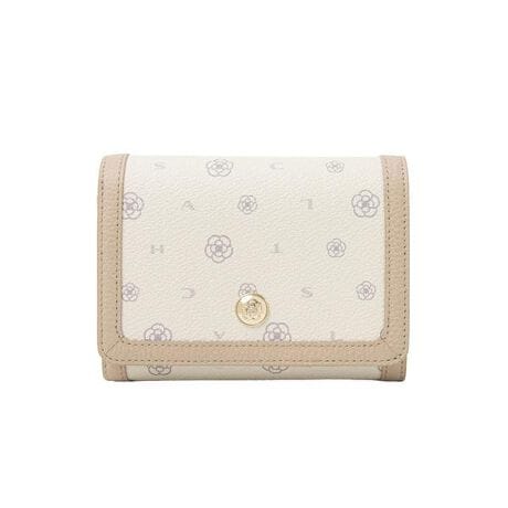 摩擦に強いPVC素材と手付属パーツを組み合わせた、実用性の高さが魅力のミカシリーズ。PVC素材には、カメリアモチーフとブランドロゴのアルファベットを散りばめたコンパクトな総柄プリントを施し、主張しすぎない中にもCLATHASらしい華やかさをプラス。汚れやキズが付きにくく、お手入れしやすい素材感は、毎日持ち歩く財布にぴったりです。通勤やお出かけ、旅行など幅広いシーンで活躍し、実用性重視の方にもおすすめの大人向けウォレットです。【メーカーサイズ寸法(実寸)】サイズ:H:10/W:13/D:4.5/重さ:160g/札入れ:2/小銭入れ(仕切り有):1/カードスロット:17/フリーポケット:5