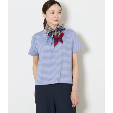 フロントにタックを施したラウンドネックの半袖プルオーバー。胸元のタックが自然な立体感を生み、顔まわりを華やかに見せてくれます。ジャケットインにも対応できるきちんとデザインシンプルなシルエットながら素材の表情が引き立ち、1枚でもきちんと感のある着こなしに。ジャケットインにもおすすめです。