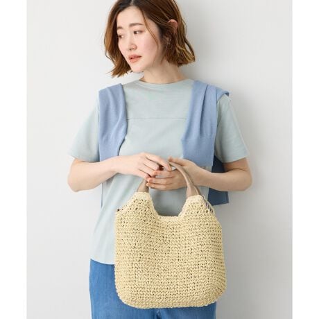 夏らしい雑材風の素材をミニサイズに仕上げた、今季らしいバランスのバッグ。