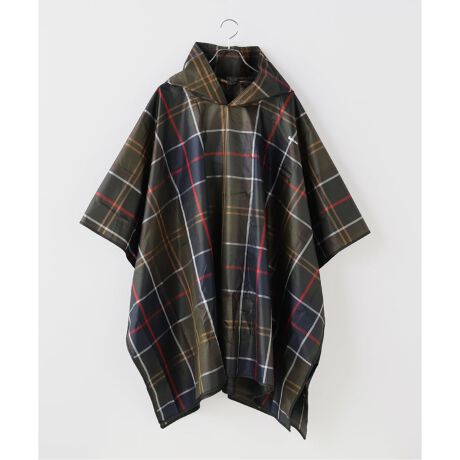 Barbour「tartan showerproof poncho」は、ブランドを象徴するクラシックなタータンチェック柄を全面に配した、フード付きのレインポンチョです。