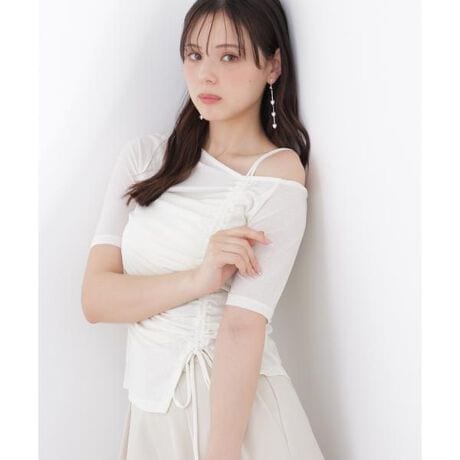 ドローストリングでギャザーが自在に楽しめるアシンメトリーなカットソー。ボトムスや気分に合わせて、肌見せ具合を調整できるデザインです。肩のさりげない肌見せとヘルシーな抜け感で、カジュアルながら大人っぽく洗練されたスタイルが完成します。