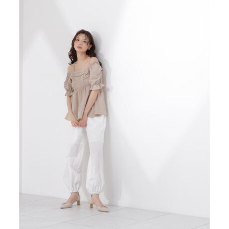 汗ばむ季節もさらりと快適に穿ける、タフタのようなドライタッチ素材のジョガーパンツ。ベタつきにくく、1日中清潔感のある着こなしをキープします。ウエストはオールゴム仕様で締めつけ感が少なく、長時間の移動やリラックスしたい休日にもぴったり。夏に映えるクリーンなホワイトカラーのみ股上まで裏地付きです。
