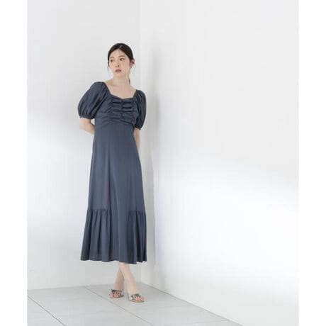 フロントギャザーがトレンド感を演出するワンピース。広めに開いた襟ぐりが顔まわりをすっきりと見せ、パフスリーブが気になる二の腕をカバーします。一枚で着られるラクさがありながら、自然とスタイルアップが叶うシルエットに仕上げた一枚。デイリーからお出かけまで幅広いシーンで着用いただけます。