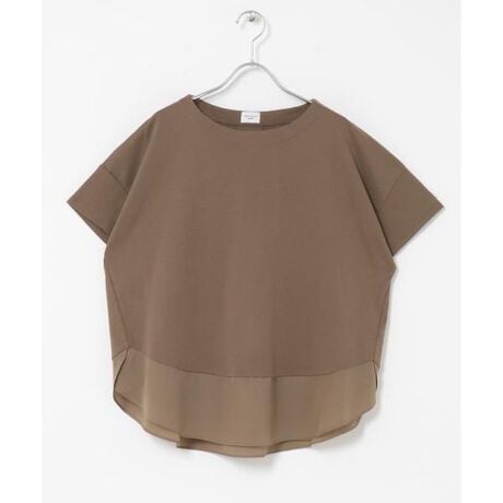 キレイめのシルケットカットソー素材に、異素材の布帛を切り替えた上品なプルオーバー。
