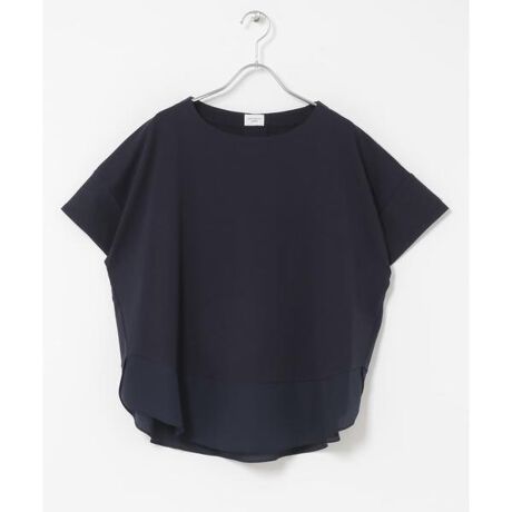 キレイめのシルケットカットソー素材に、異素材の布帛を切り替えた上品なプルオーバー。