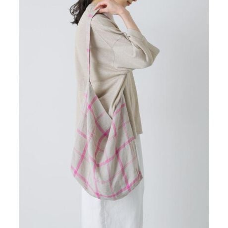 コーディネートに程よい抜け感を与えるショルダーバッグ。ビッグサイズが使いやすく気軽に物を入れることができます。風合い豊かなリネンを使用し、発色の良いピンクの格子柄が可愛いです。肩掛け/斜め掛け/持ち手を短めにするなど様々なアレンジをお楽しみください。ギフトにもおすすめの一品。