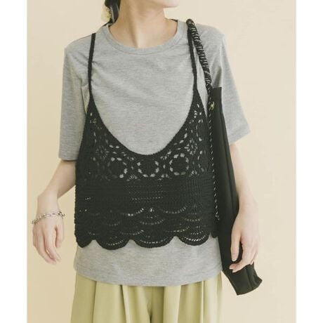 ニットビスチェとTシャツがセットになった、レイヤードスタイルが楽しめるアイテム。重ねるだけでバランスの良いコーデが完成し、忙しい日にも頼れる一着です。ほどよくフェミニンな雰囲気で甘くなりすぎず、大人かわいいスタイルに。セットではもちろん、それぞれ単体でも着回せるので、デイリーコーデの幅が広がります。
