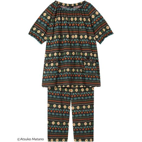 [型番:HDT125]・綿100%の天竺素材を使用・コントラストの効いたカラーリングで、オリエンタル風の素敵なテキスタイル・ポケットから顔をのぞかせている黒猫のアップリケがデザインポイント・おうち時間にぴったりな、リラックス感のあるシルエット・ネック・袖口ゴム入替設計※お洗濯は、必ず「取扱い表示」にしたがってください。