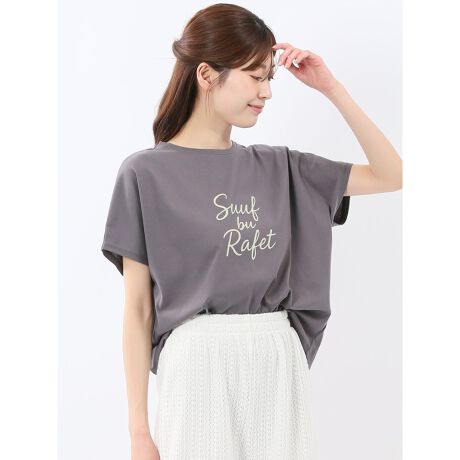 シンプルで着回しやすい、クルーネックのドルマンTシャツです。筆記体のお洒落なロゴプリント、肩を落としたドルマンスリーブ、前後差のある着丈がポイント。一枚できるのはもちろん、ジャケットやジレのインナーとしても便利なアイテムです。