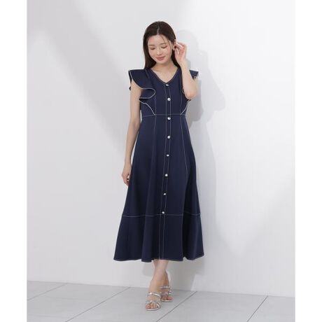 微配色ステッチがさりげないアクセントになるワンピース。フロントには見せかけ釦をあしらい、上品で女性らしい印象に見せてくれます。後ろウエストは共地リボン付きのゴム仕様で、動きやすさとフィット感を両立。デイリーはもちろん、キレイめなシーンにもおすすめです。