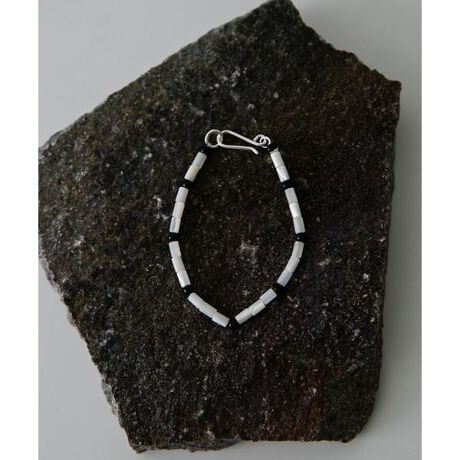 上品な光沢のホワイトシェルに、オニキスを等間隔に配したコントラストが美しいブレスレット。