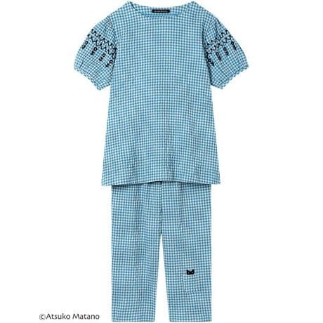 [型番:HDT124]・薄くて軽やかな綿混のボイルシャーリング素材を使用・凹凸があるため肌ばなれがよく、ベタつきやすい夏におすすめ・ギンガムチェックが素敵なテキスタイル・腕まわりの刺繍とボトムのポケットから顔をのぞかせている黒猫のアップリケがデザインポイント・ゆったりとしたリラックス感のあるシルエット・シワが気になりにくく軽やかなので、旅行にもおすすめ・トップス両サイドにポケットあり※お洗濯は、必ず「取扱い表示」にしたがってください。