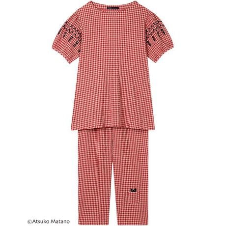[型番:HDT124]・薄くて軽やかな綿混のボイルシャーリング素材を使用・凹凸があるため肌ばなれがよく、ベタつきやすい夏におすすめ・ギンガムチェックが素敵なテキスタイル・腕まわりの刺繍とボトムのポケットから顔をのぞかせている黒猫のアップリケがデザインポイント・ゆったりとしたリラックス感のあるシルエット・シワが気になりにくく軽やかなので、旅行にもおすすめ・トップス両サイドにポケットあり※お洗濯は、必ず「取扱い表示」にしたがってください。