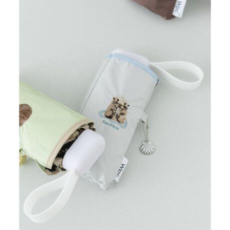 傘袋と傘生地に、可愛らしいどうぶつたちを刺繍したコンパクト日傘。刺繍されたどうぶつにちなんだ異なるチャーム付き。