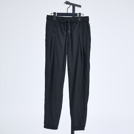 フロントに配した2タックが生み出す立体的なシルエットと計算されたリラックス感が特徴。ウエストはドローコード仕様でストレスフリーな穿き心地を叶えながら、裾のリブが全体を引き締めます。カジュアルとエレガンスを兼ね備えた、大人のためのイージーパンツです。