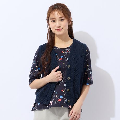 すっきりとしたVネックで合わせやすく、ボタン開きのため着脱も便利。お洒落のアクセントとしてはもちろん冷房対策にもなりますし、体のラインをカバーしてくれます。