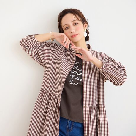 パンツ合わせで軽い織りものとして着用したり、ボタンを閉じてチュニックとして着ても◎。