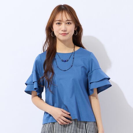 身頃はすっきりとしたデザインなのでスカートパンツどちらにも合わせやすく、汎用性の高いアイテム。袖のフリルがフェミニンさをプラスしてくれます。