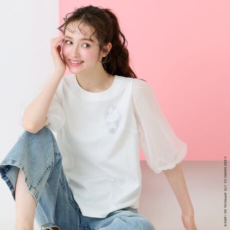 ・愛らしいポージングのマイメロディ をラインストーンで表現し、かわいらしさのあるデザインカットソー。