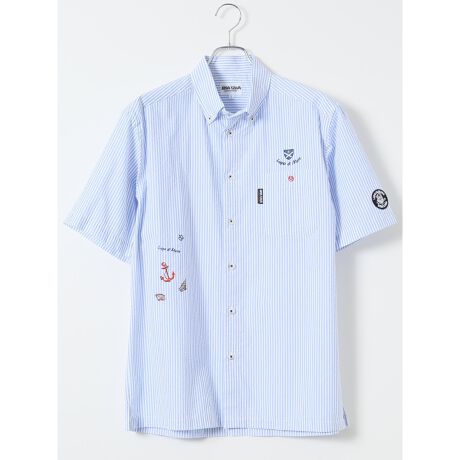 綿 サッカー チェック柄 ボタンダウン 半袖 シャツ
