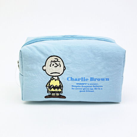 チャーリーブラウンのコスメポーチです。アップリケ刺繍が可愛い♪メイク用品や小物を入れるのにぴったりなサイズ感です☆ナイロン素材で柔らかく使いやすいポーチです♪